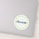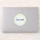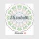 A pretty boho chic floral mandala of leaves, hearts & scrollwork in a Scandinavian Folk Art style. In colourful pastel colours of blue, green and pink. A cute and personalised name sticker to adorn your phone, laptop, water bottle, books and more...