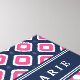 Chic, girly, trendy, modern ikat diamond pattern in shades of blue and pink with white. A stylish, mod, geometric background featuring a custom nameplate template in navy and white for you to easily personalise your name or monogram.