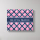 Blue Pink Ikat Mod Pattern with Name Canvas Print