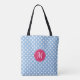 Blue Pink Monogram Polka Dots Tote Bag