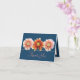 Three beautiful coral pink and orange dahlia flowers set against a blue colour background. The pink colour text uses an attractive script typography font. The flowers cover the front of this card which can be used as a wedding thank you card, a birthday card, or any other card of your choice. Personalise it with your text and/or pictures to make it one-of-a-kind!