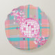 Blue, Pink & Peach Pattern with Glitter & Hearts | Round Cushion