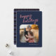 Blue Pink Plaid 1-Photo Happy Holidays Script Holiday Card