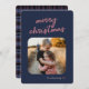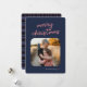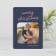 Blue Pink Plaid 1-Photo Merry Christmas Script Holiday Card