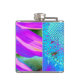 Blue pink retro funky sunflower photo hip flask