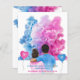 A budget baby shower or gender reveal invitation. On a white background the design consists of elegant blue and pink smoke, that contains the baby's surname followed by gender reveal within black typography text. A couple in pink and blue t-shirts are seen watching the smoke while surrounded by love heart shaped blue and pink balloons. Personalize by adding your full event and contact details to the front and back.