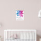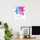 A Gender Reveal Baby Shower Welcome Sign Poster. On a white background the design consists of elegant blue and pink smoke, that contains the baby's surname within white typography text.