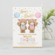 This adorable teddy bear themed invitation is sure to put a smile on your guests' faces! The soft pastel pink, blue & gold colour scheme makes this design perfect for a boy & girl twin baby shower. Personalise the invite with your details and if you want to further re-arrange the style and placement of the text, please press the "Click to customise further" button.