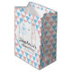 Blue and pink triangle pattern gender reveal with blue and pink nautical anchors gift bag. The design features a blue and pink triangles pattern and a white circle in the middle with a baby blue and a baby pink anchor and your custom text.
