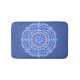 Easy care bath mat with "mandala" style geometric pattern. Blues, pinks and white create a pleasing pattern.