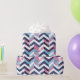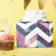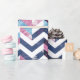 A marble-like chevron design made of white, blue, and pink zig zags. This is a very elegant design for chic ocassions.