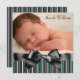 Baby blue and black pinstripe baby boy photo birth announcement.