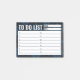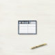 Checkbox to do list notepad with practical lines, a dark blue plaid pattern, and boxes for you where you can write by hand your name and the date.