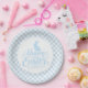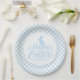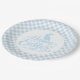 Party paper plate is shown in a cute powder blue and white plaid Easter print.