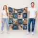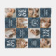 Blue Plaid Family Monogram 8 Photo Christmas Fleece Blanket
