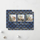 Elegant blue buffalo plaid photo collage Merry Christmas card. Easily personalise this blue chequered photo Christmas card with your photos and the family name.