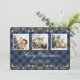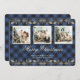 Blue Plaid Gold Holly 3 Photo Merry Christmas Card