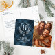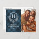 Blue Plaid Monogram Photo Christmas Holiday Postcard