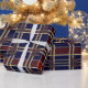 Blue Plaid Tartan Christmas Tree Wrapping Paper