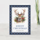 Blue Plaid Watercolor Deer Merry Christmas Holiday Card