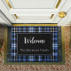 Blue Plaid Welcome Monogrammed Family Name Doormat