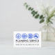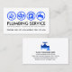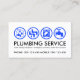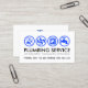 An all white cover features a blue plumbing tools icon design at the top of the card. Below this is the business name "PLUMBING SERVICE" alongside a list of possible services and your phone contact. ; You can change the caption remarks to the list of services suit your own service needs.