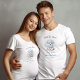 Blue Polar Bear Winter Boy Baby Shower parents t-shirt in light blue & grey. Easily personalise the text or leave some blank. - Kate Eden Art