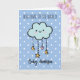 A personalised new baby boy greeting card featuring a cute cloud against a blue and white polka dot background. You will be able to easily personalise the front with baby boy's name. This personalised new baby card will make a wonderful keepsake for the new parent(s).