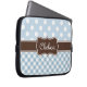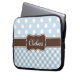 Blue Polka Dot Gingham Patterns Brown Name Laptop Sleeve