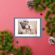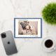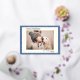Wish friends and family a Merry Christmas with this cute card featuring a simple blue and white polka dot snow pattern and gold foil, personalised with your photo, greeting, and name.