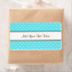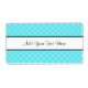 A pretty almost teal blue with light polka dots. The centre has a white rectangle with a dark brown outline that can serve as a highlight for your custom text, or if you prefer, you can easily remove it.