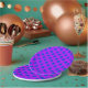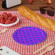 Blue polka dots on purple paper plate