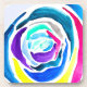 Pop art from original watercolor painting of an abstract blue rose with colourful cartoonish colours. Bright pop art style.