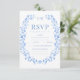Contemporary and romantic, these RSVP response cards for a spring/summer folk wedding inspired by blue porcelain patterns feature beautiful watercolor flower wreath and pattern, creating a botanical and elegant design.