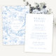 Elegant light blue floral chinoiserie pattern spring or summer garden wedding details card with bride and groom monogram.