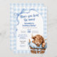 Blue Preppy Gingham Cow Baby Shower Invitation