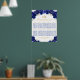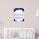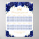 This elegant and glamourous Quinceañera table seating chart features a gold crown and beautiful dark blue floral arrangements with gold confetti. The text combines handwritten script and modern sans serif fonts for a classy and sophisticated look.