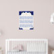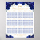 This elegant and glamourous Quinceañera table seating chart features a gold crown and beautiful dark blue floral arrangements with gold confetti. The text combines handwritten script and modern sans serif fonts for a classy and sophisticated look.