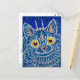 A fine art postcard featuring an abstract blue cat illustration by the English artist Louis Wain (1860-1939). Renowned for his illustrations, he is most celebrated for his depictions of animals and pastoral scenes, particularly his distinctive large-eyed cats full of character. This drawing is from his psychedelic period.