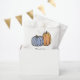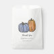Rustic illustrated orange and blue pumpkins and easy to personalise text make this baby shower favour bag a fun way to send guests home with a treat after graciously celebrating the mother to be at her shower.