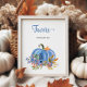 Add a seasonal touch to your shower favours with this beautifully illustrated sign. Featuring hand-drawn fall elements and a blue pumpkin, it’s the perfect detail for your baby boy’s fall celebration.