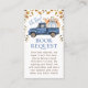 Boy's autumn foliage pumpkin truck baby shower books for baby insert featuring a dark blue truck and light blue and orange pumpkins. This design also features some brown autumn foliage. This fall themed pumpkin truck boy's baby shower book request card is ideal for a boy's fall baby shower.