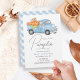 Blue Pumpkin Truck Gingham Boy 1st Birthday Invitation