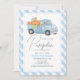 Blue Pumpkin Truck Gingham Boy 1st Birthday Invitation