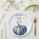 Blue Pumpkin Watercolor Boho Baby Boy Shower Paper Plate