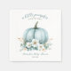 Celebrate the arrival of your little one with these adorable blue pumpkin baby shower napkins. Featuring a soft blue watercolor pumpkin, complemented by floral accents and eucalyptus sprigs, these napkins beautifully embody the charm of a fall baby shower. The sweet phrase "A little pumpkin is on his way" adds a heartwarming touch, making them perfect for a boy's celebration. Ideal for adding a seasonal yet elegant flair to your event, these napkins will surely impress your guests and enhance any fall-themed decor.