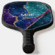 Blue Purple Aqua Gold Veins Monogram Agate Pickleball Paddle