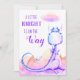 This baby shower invitation purple turquoise blue dragon design has a sweet gradient blue dinosaur / dragon with a background of a magical mountains.