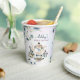 Blue purple watercolor floral tea party bridal shower monogrammed personalised paper cups customised template bridal shower table decor printed paper cups