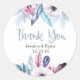 Thank you stickers with customised details for your party favours, features watercolor blue leaves, flowers and feathers. Matching designs are also available.